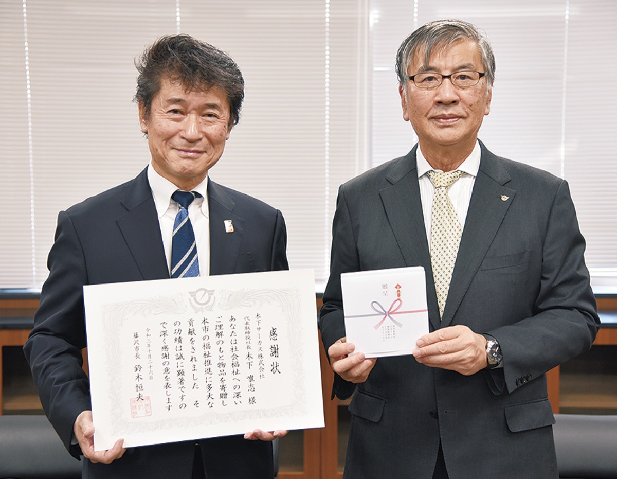 鈴木恒夫市長は「福祉施設の皆さんは喜んでくれると思う。私も子どもの頃に見たサーカスは覚えている。大切な思い出になる」と感謝を述べた。
