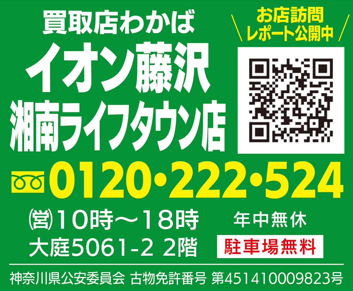 全国100店舗以上を展開する「買取店わかば」。イオン藤沢湘南ライフタウン店では現在、「未使用テレカ」を買取強化中。1枚300円以上で必ず買い取ってくれる。また、5千円以上(金券・硬貨除く)の成約で交通費500円プレゼントも実施。いずれも11月26日(金)まで。