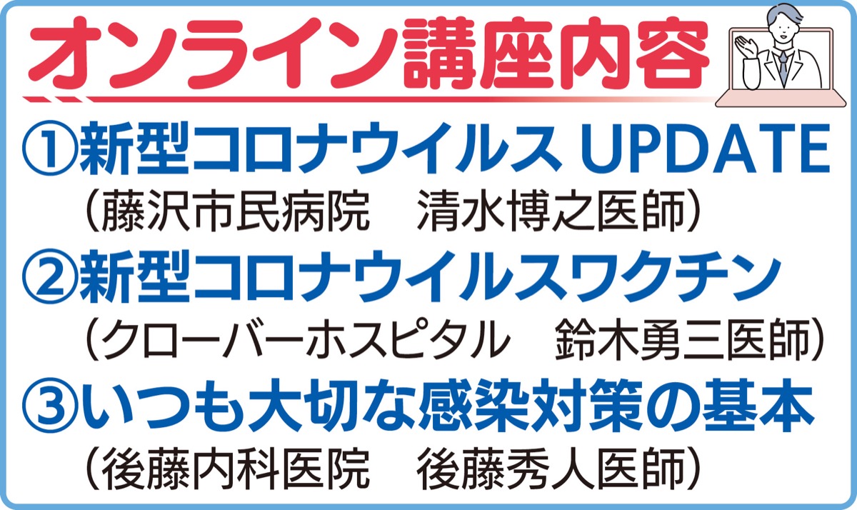 コロナ禍でも必要とされる医療情報を発信しようと動画を作成した。テーマは「新型コロナウイルス感染についてわかったこと」。3人の医師が、【1】アップデート(最新情報)、【2】ワクチン、【3】感染対策の基本について紹介する。講座は同会ホームページから、ひとつの講座から視聴することができる。