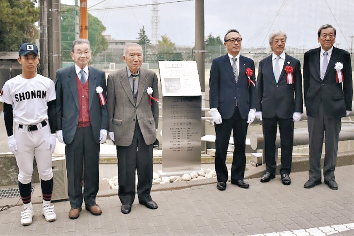 県立湘南高校(鵠沼神明)に1949(昭和24)年に第31回全国高校野球選手権を初制覇したことを顕彰するモニュメント=写真=が完成し、先月21日に除幕式が行われた。