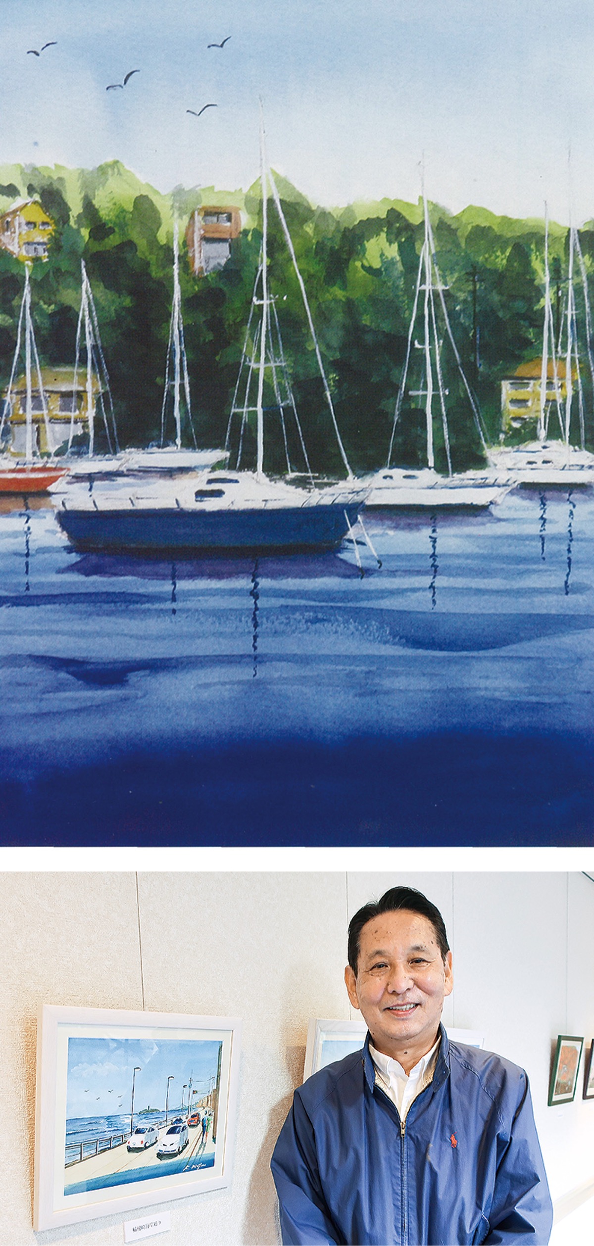 作者は辻堂在住の松尾清さん(74)。「人生楽しむのが一番」を掲げ、定年後も同施設で働きながら趣味のサーフィンなどにもまい進。70歳間際で水彩画をはじめ「年齢という枠組みを超えて新しいことに挑戦し続ける姿が施設の利用者らにも元気を与えられる」と、初の個展を開催することになった。