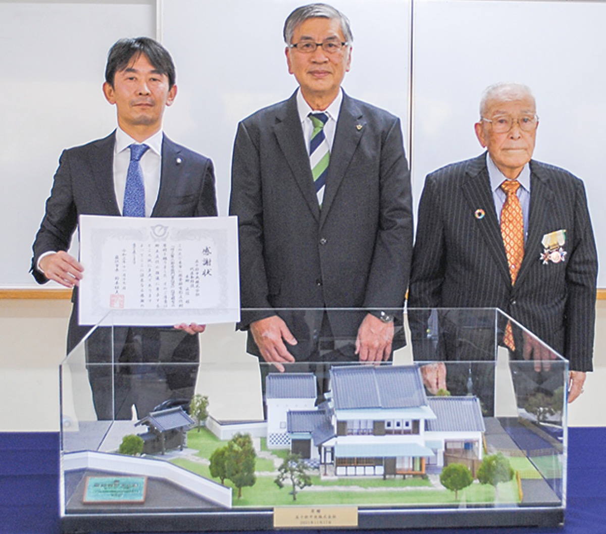 来年取り壊しが予定されている羽鳥の国登録有形文化財「旧三觜八郎右衛門家住宅」を忠実に再現した50分の1の模型が先月17日、明治市民センターに寄贈された。
