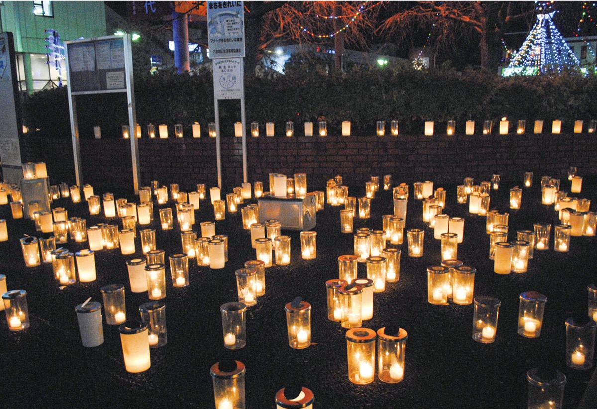 地域住民主体で行っている六会日大前駅イルミネーションに今年は期間限定でキャンドルが加わった=写真。