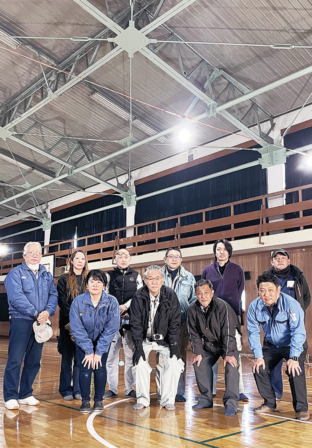 当日は、会員らが実際に体育館に照明を設置し調整。機材は協会寄贈の銘を打った箱に入れられ、災害用備蓄倉庫へ納められた。同協会班長の市川悟さんは「災害時は何が起きるか分からない。市民の暮らしの明かりを支えるのが自分たちの仕事」と話した。