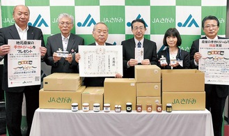 JAさがみの西山國正代表理事組合長は「食は命と言われているが、農作物を地域貢献にマッチングさせることができた。有効に使ってほしい」と話した。