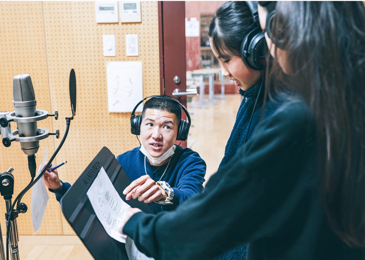 3日、同校音楽室では、楽曲に参加する児童らがレコーディングに励んでいた。「笑顔で歌おう。ノリノリでね」。ラップシンガーで環境活動家の神澤清さん(24)が指導する。