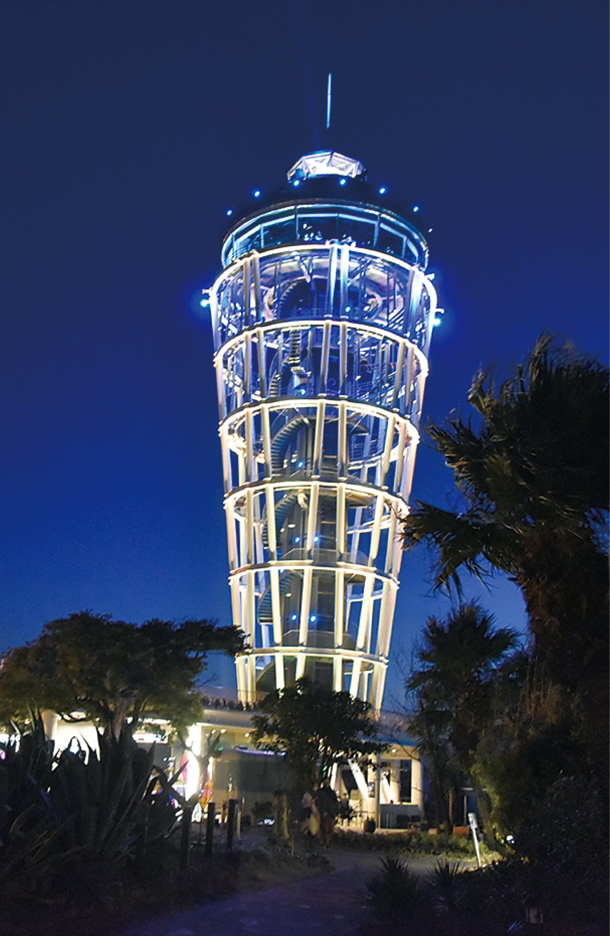 4と5の両日には、江ノ島電鉄の協力で江の島シーキャンドルを青と黄色にライトアップ。抗議と世界の恒久平和の実現に向けた祈りを込めた。