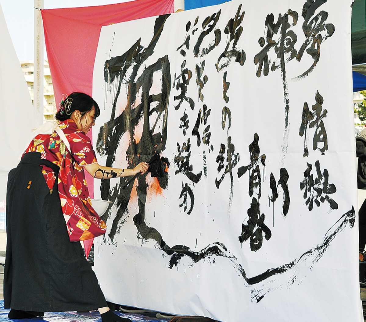 書道家になるのが夢という羽鳥在住の荒井理紗子さん(18)は書道パフォーマンスを披露。曲に合わせて筆を走らせ、「夢 情熱 輝け 青春 友との絆 己を信じ いざ突き進め 魂」と一気に書き上げた。「高校生活では不完全燃焼の繰り返しで、全力を出せたことがありがたかった。企画を考えてくれた人には感謝しかない」とはにかんだ。