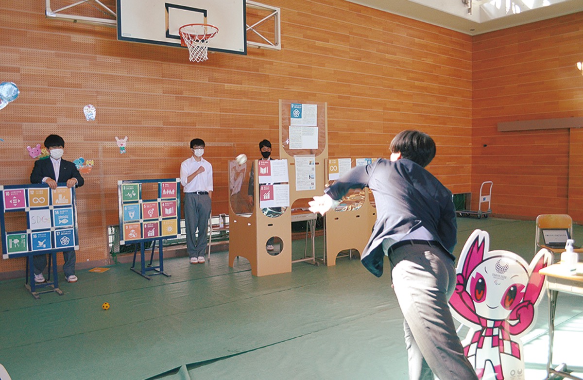 それぞれの展示ブースを屋台に見立て、17の目標を的にしたストラックアウトや、フェアトレード商品展示、車椅子やボッチャの体験など、楽しく学べる工夫が凝らされたブースが立ち並んだ。