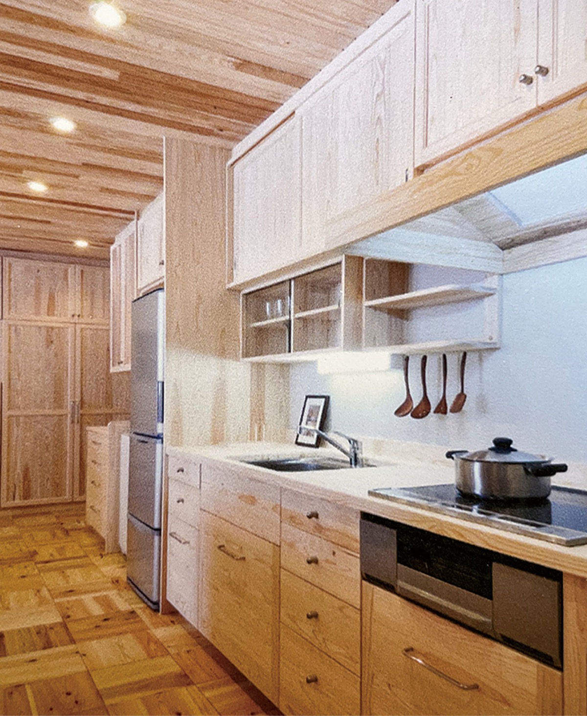 得意とするのは無垢の木材。どんなインテリアとも相性が良く、適度な高級感と清潔感が魅力。適切な森林伐採は環境に欠かせないとされ、身体にも優しく、SDGsでも注目が集まる。素材の特徴を知り尽くす職人たちならではの技が光る。