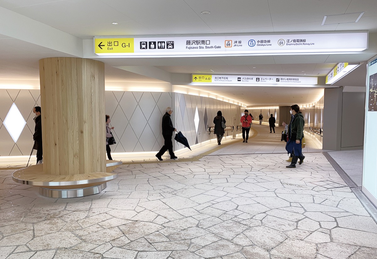 藤沢駅北口を東西に結ぶ地下通路の全面改修が、このほど完了した。整備から40年以上が経過し、老朽化や薄暗く人通りが少ないことなどが課題となっていたが、ユニバーサルデザインやバリアフリー化を施し、機能や印象を一新。「湘南の玄関口」に相応しい装いに生まれ変わった。市などは今後、賑わいや市民交流の拠点として活用していきたい考えだ。