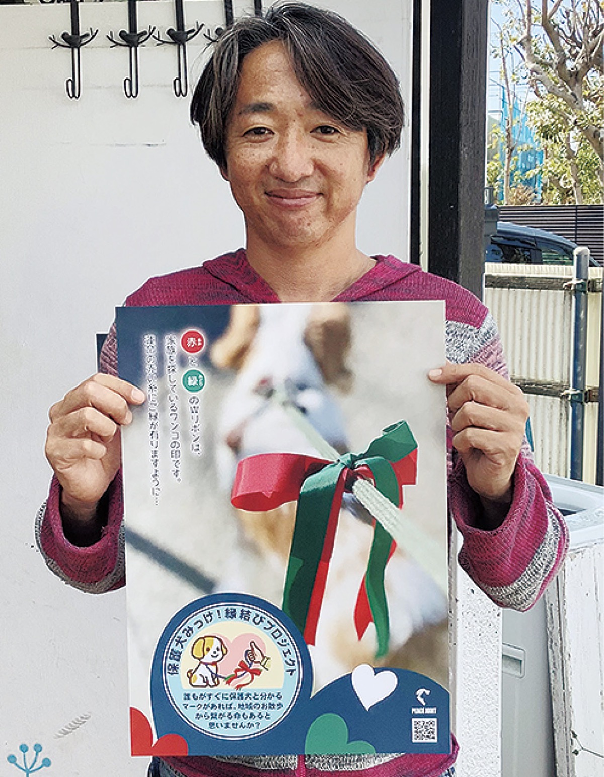 今後は散歩中のSNS発信や、ポスター掲示など地道に進める予定。加えて、同フットサルクラブと保護犬支援の協定を結ぶ企画も進んでいる。いずれは海外のプロサッカーで見た、選手入場のエスコートで子どもの代わりを保護犬が務める企画も考えている。「まずはダブルリボンの意味を日本全国の人たちに知ってもらって、ワンコたちを幸せにしていきたい」と三浦さんは力を込めた。活動詳細はホームページで(https://peace-joint.com/)。