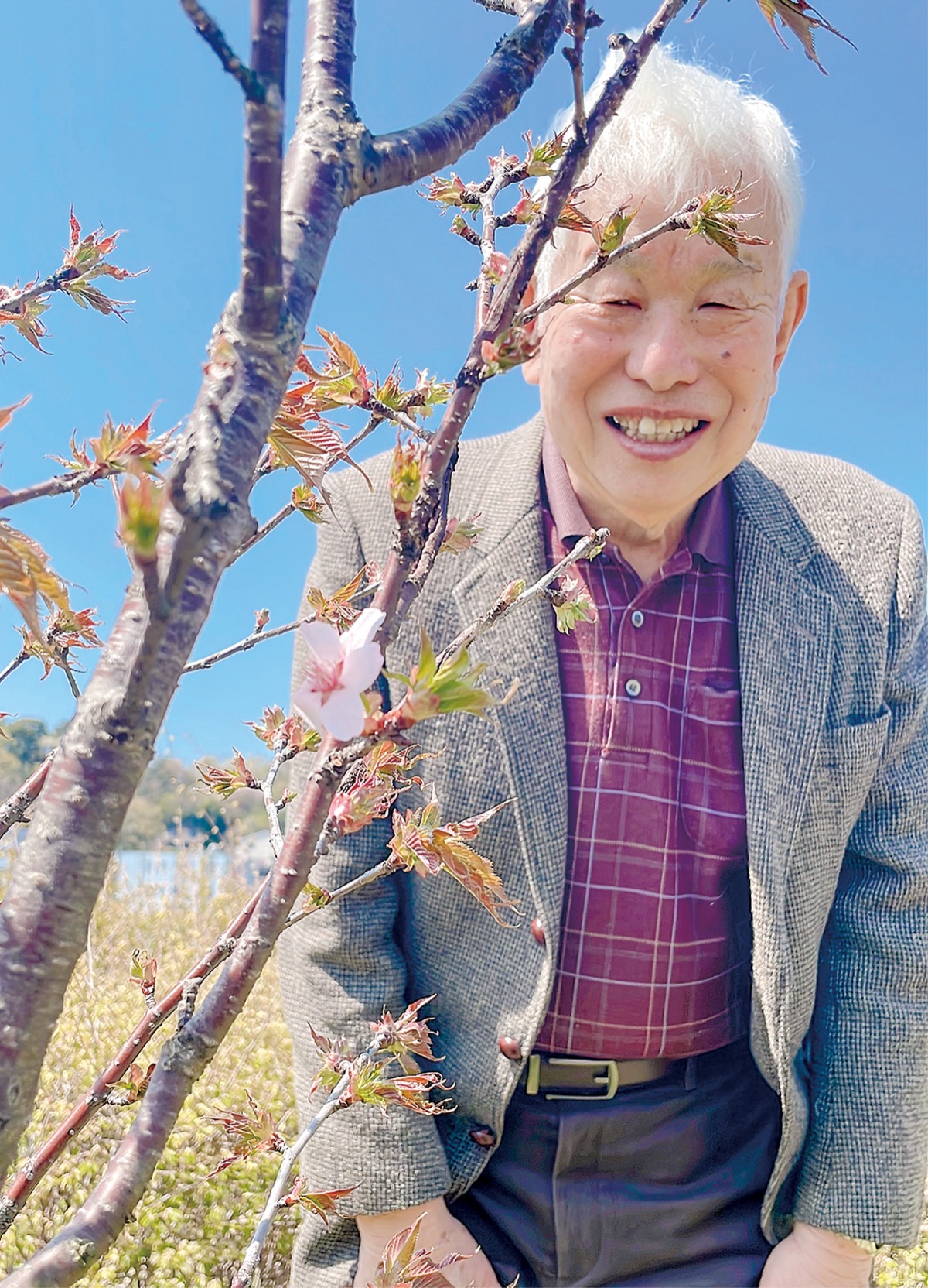 8日、編集室へ一本の電話が入った。「桜がね、10年間ずっと待っていた桜が咲いたんですよ」。弾んだ声の主は、鵠沼松が岡在住の八幡三郎さん(82)。2012年に根室市から寄贈され、引地川親水公園に植樹された「チシマザクラ」のうち1本が植樹してから初めて開花したという。八幡さんは根室市と親交が深く、植樹の橋渡しとなった。北方領土返還運動啓発の意味も込められた桜に「平和の知らせになる花だといいね」とほほ笑む。