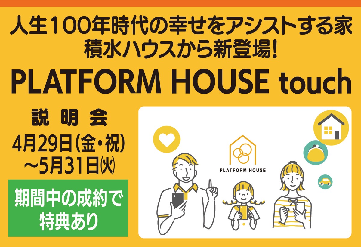 同展示場では4月29日から、家と人との「つながり」で幸せをアシストする「プラットフォームハウスタッチ」の説明会を開催。スマホがあれば、どこにいても対象機器の状態確認・操作ができるので便利。5月31日までの成約で特典あり。