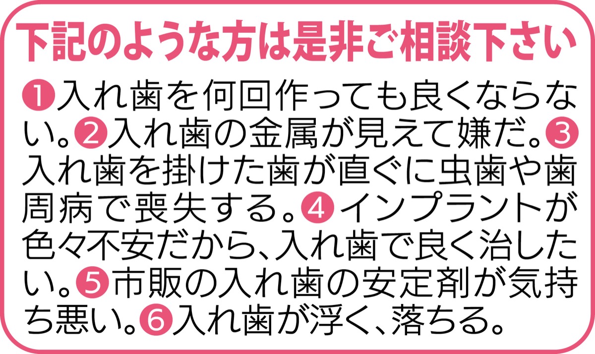 噛める、痛くない、審美的入れ歯で快適生活