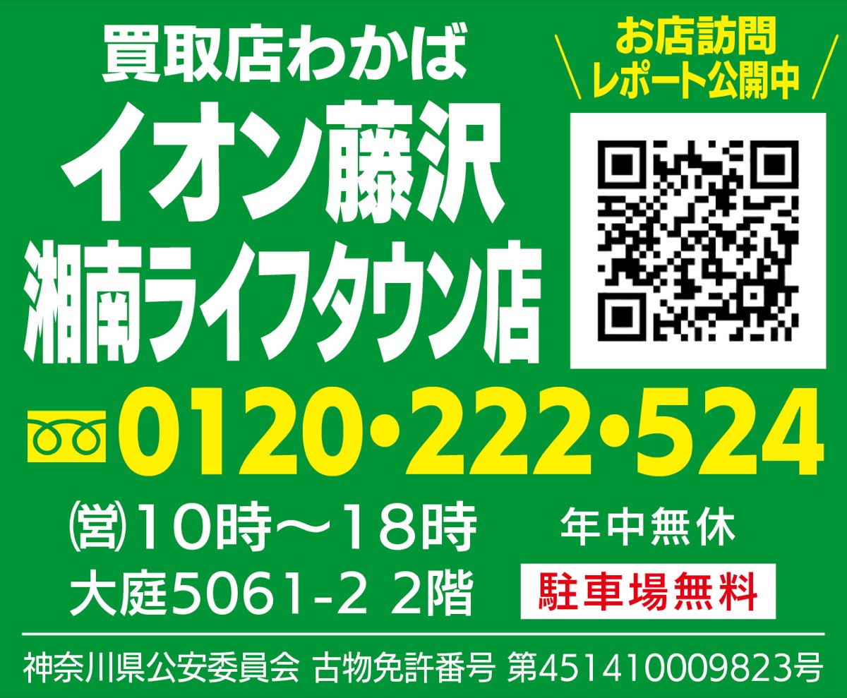 全国150店舗以上展開の「買取店わかば」。イオン藤沢湘南ライフタウン店では6月17日(金)まで「ルイヴィトンバッグ」を買取強化中。ボロボロで傷があっても、20年以上前の古い物でも、期間中は5千円以上で必ず買い取る(大きな破損も査定対象)。
