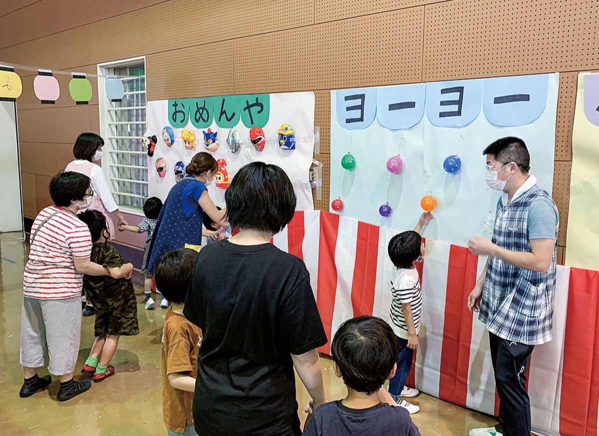 会場では貼り絵コーナーや牛乳パックで作った「コロコロピンボール」、トランポリンや手作りの縁日コーナーなどが設けられ、密を避けながら楽しいひと時を過ごした。