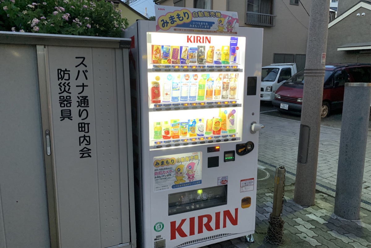 設置したのはスバナ通り町内会が管理する同会館の敷地内。自動販売機には「いつもまちをみまもっています」のキャッチフレーズと、防犯カメラを搭載していることを掲示している。