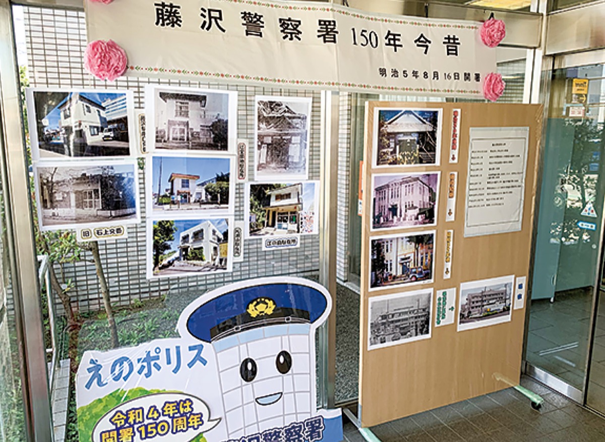 先月16日に開署から150年を迎えた藤沢署が周年を記念した企画展を実施している。時代の変遷とともに移設や改称を繰り返してきた同署や同署管内の交番を写真入りで紹介。歴史の一端を伝えている。