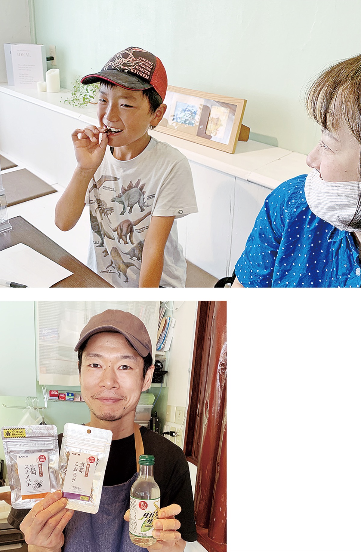 どんな味がするのか、早速試食させてもらった。まずは広島産のコオロギを眺めると成体よりも一回り小さい。茶褐色で口に運ぶとほど良い塩気とぱりぱりとした食感でスナック菓子のようだ。味はほとんどないが、アーモンドのような香りが鼻へ抜ける。「それは広島産でアーモンドを食べて育ったコオロギ。雑食性で与えたエサの味が出るんです」と店主の角田健一さん(41)。