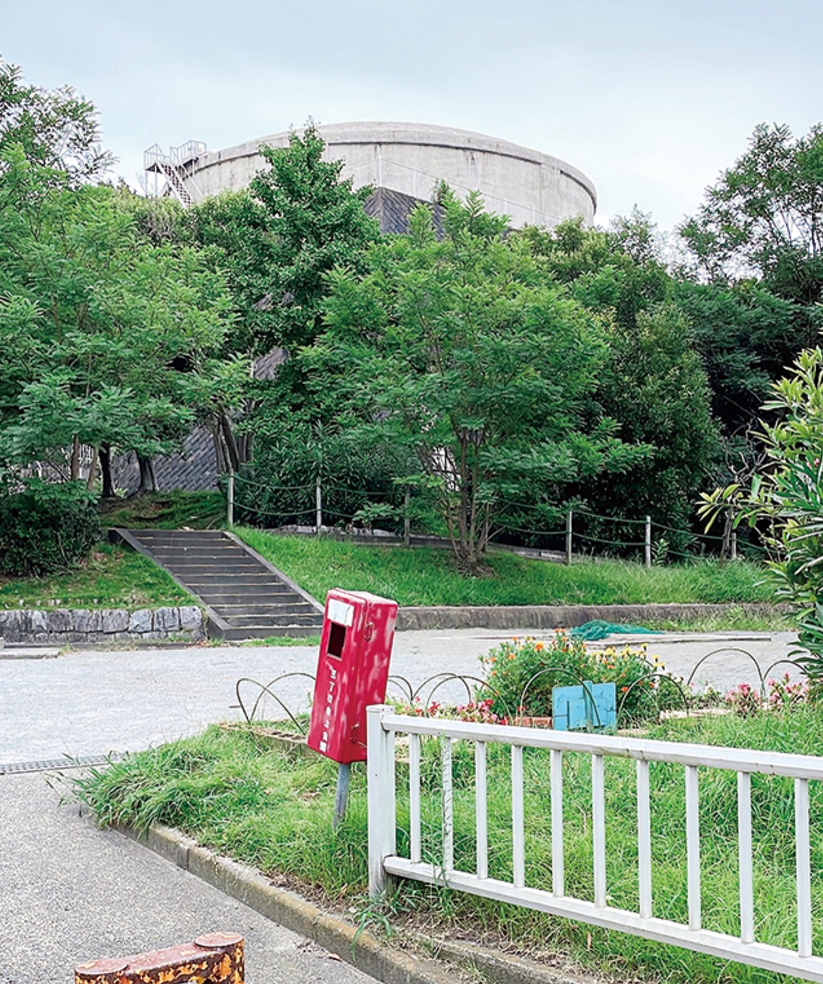 山の頂上にある理由は、「高さを利用し、地域全体へ配水を行うため」。同施設の10年前に片瀬山のふもとに10倍の容量を持つ片瀬配水池が完成していたが、高台の供給が増えるために作られたのだという。