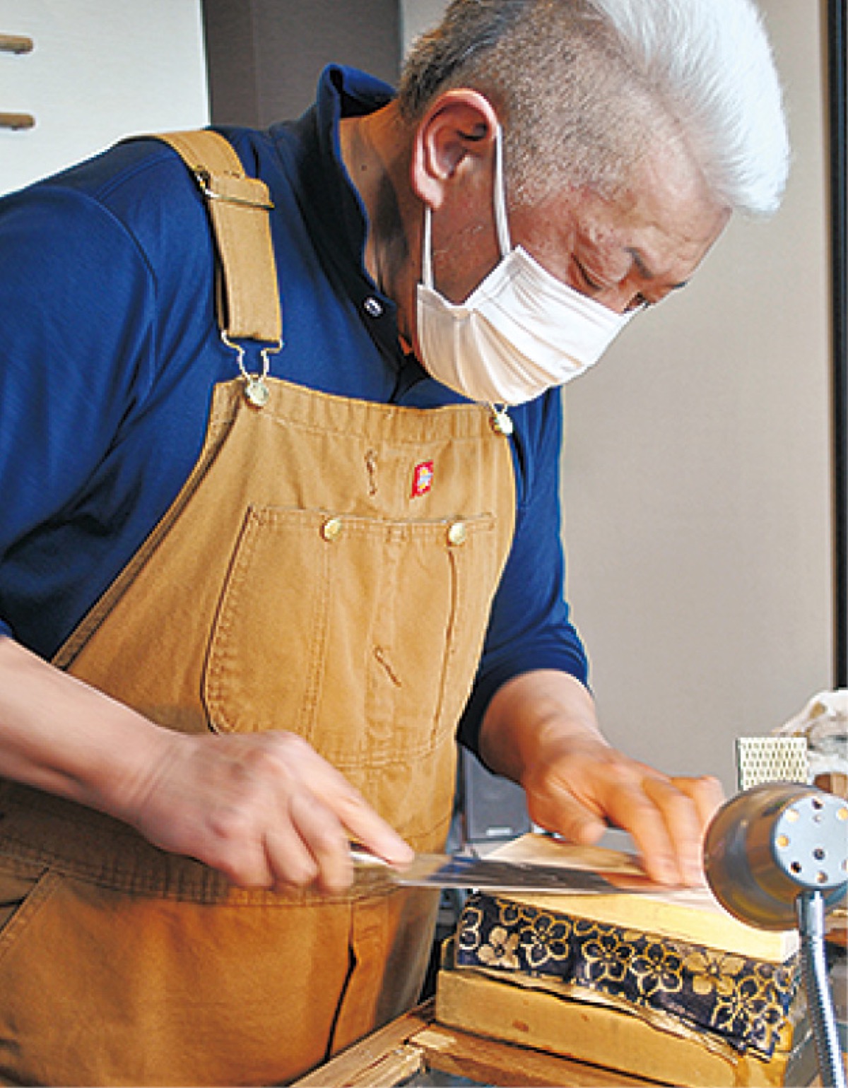 「毎日の料理に欠かせない包丁。台所仕事の負担を切れる包丁で少しでも軽減してもらえたら」。そう話すのは開店2年を迎えた「研ぎ処清治郎(きよじろう)」の杉本清さん。築地の老舗刃物店で培った手研ぎで丁寧に仕上げている。税込1300円〜。築地時代から1万丁以上を手掛けてきた技術を一度体験してみては。
