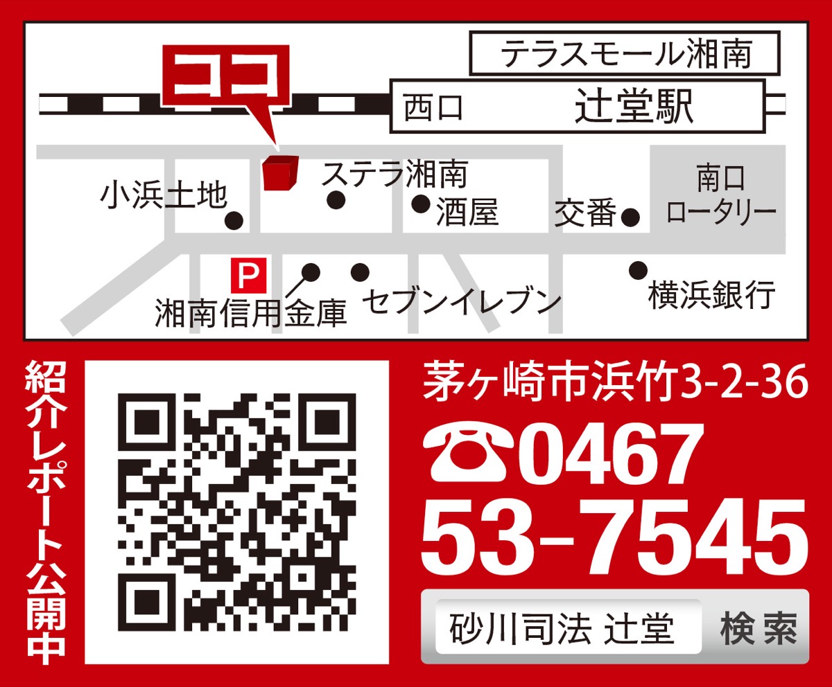 辻堂駅西口徒歩1分にある「砂川司法書士事務所」の砂川知明代表司法書士は相続アドバイザー協議会会員で、これまで2千件以上の相談実績を持つ相続や遺言、債務整理のスペシャリスト。「相続はご家族がいる方なら誰しも関係あること。当事者では気づかないことも多々あるので、