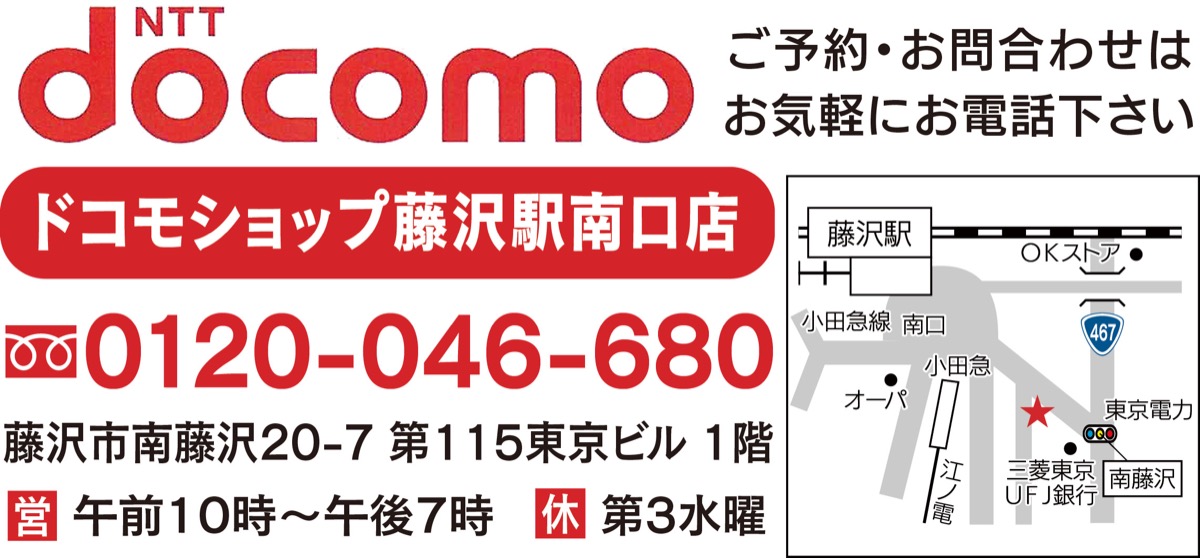そこで目を向けたいのが「ドコモショップ藤沢駅南口店」が10月21日(金)から実施するキャンペーン。FOMAの折り畳み携帯電話の所有者を対象に、3G回線終了後も使える4G対応の最新機種をなんと「0円」から販売する。10月31日(月)までの期間限定なのでこの機を逃さずに利用したい。対象機種など詳細はドコモホームページまたは同店まで。