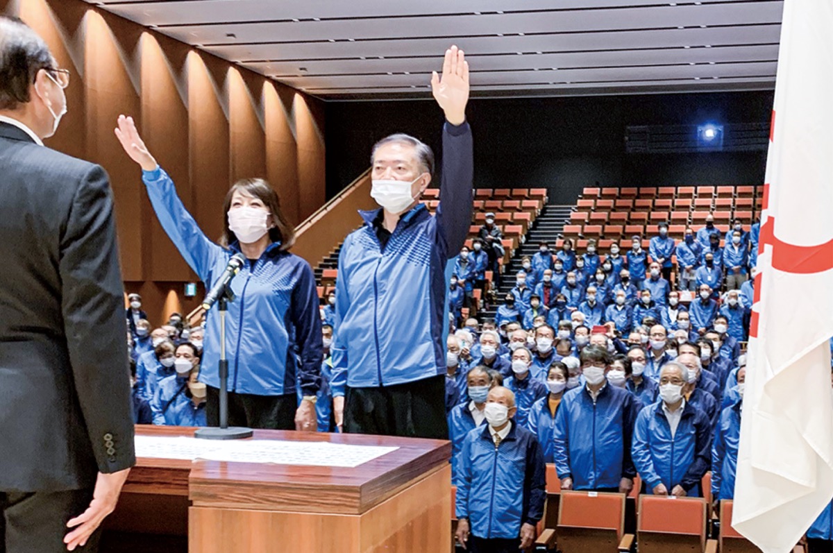 結団式では小板橋聡士副知事が「練習の成果を発揮し、ぜひメダル獲得を。けがには十分気を付けてがんばってほしい」と激励した。選手団からは剣道で大会役員の岩尾征夫団長(83)が「県外の選手と交流を深め、神奈川の魅力を全国に発信したい」とあいさつ。ダンスの廣井信義さん(68)、晶子さん(60)ペアが選手宣誓した。