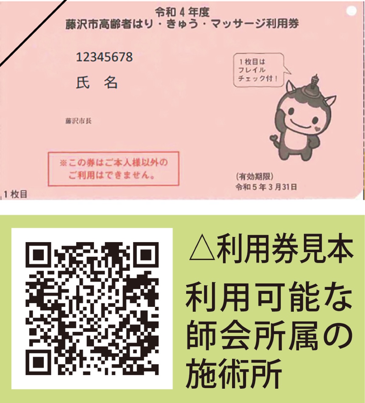 藤沢市は市内在住の70歳以上の申請者に、市内指定のはり・きゅう・マッサージ施術所で利用できる「高齢者はり・きゅう・マッサージ利用券」を交付している。1人あたり3枚(1枚3000円)の利用券を無料で交付。今年から高齢者の健康増進と介護予防を目的として、藤沢市鍼灸・マッサージ師会と連携し、指定施術所で「要介護」前のフレイルチェックなども受けられる。
