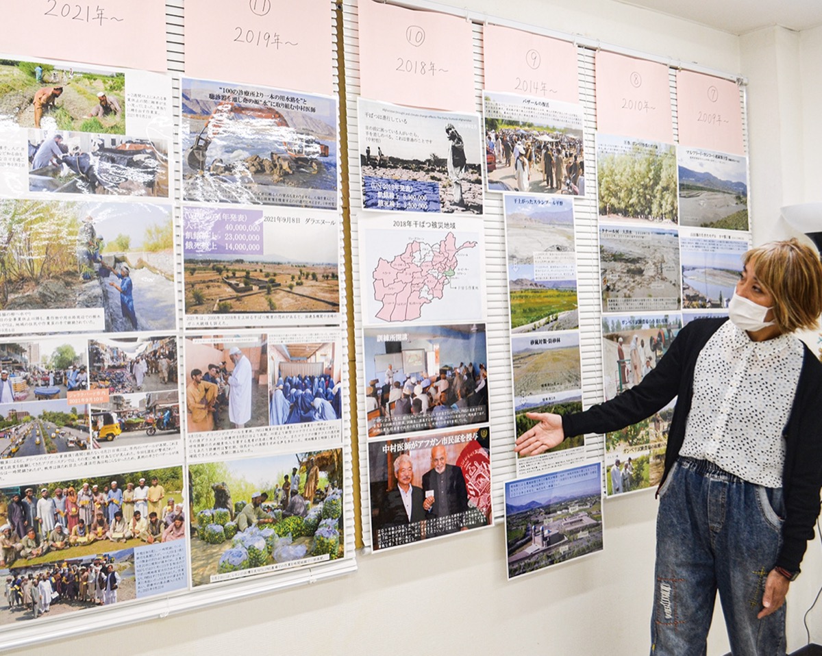 映画は、アフガニスタンで20年以上に渡り中村さんの活動を記録した「荒野に希望の灯をともす」。大干ばつを受け、医療に従事しながらも用水路を建設する事業をスタートさせる様子などを映した、中村さんの生き様に迫る内容だ。現地での写真も約50枚展示。