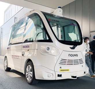 実証実験では、患者が自宅から病院まで移動すると想定し、自動運転バスが敷地内を10分間、時速約10〜16Kmで走行。昨年は一定の条件下でシステムが自動走行する「レベル3」だったが、今回は完全自動運転する「レベル4」に引き上げた。