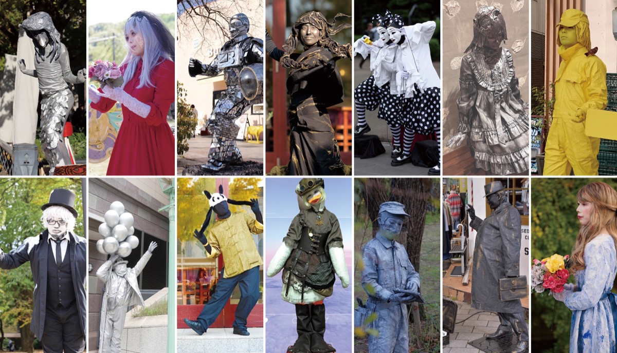 2回目となる今回は広場に出演者がパフォーマンスを披露する7スポットを設け、時間替わりに両日13組、総勢20組が出演。一見すると石像や人形にしか映らない独特の「静かな演出」が見どころだ。