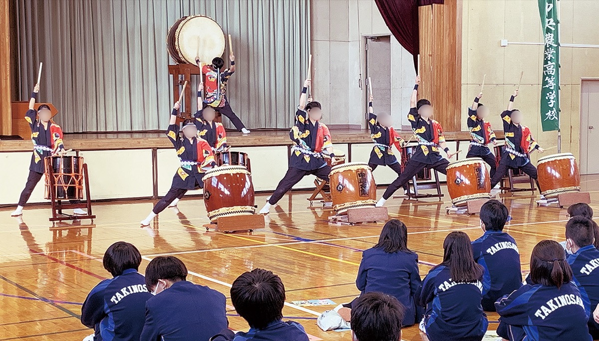 滝の沢中 中農高生が和太鼓でエール