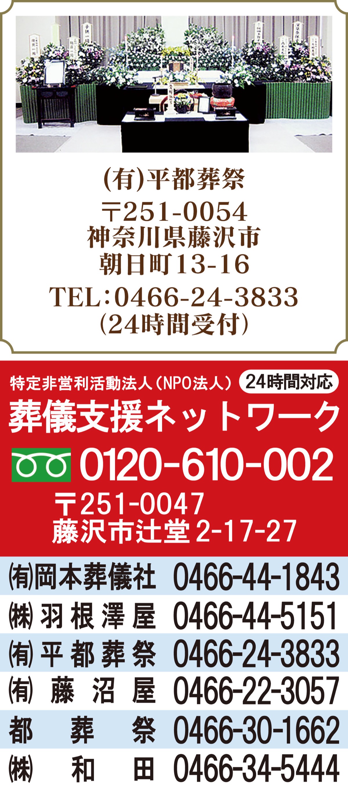 いつか必ず訪れる「別れの時」。「葬儀」は社会の移り変わりとともに変化してきた。戦後から藤沢市の葬儀の安心を支え続けてきた「藤沢市葬祭業組合」。加入する地元葬儀社の取り組みについて話を聞いた。