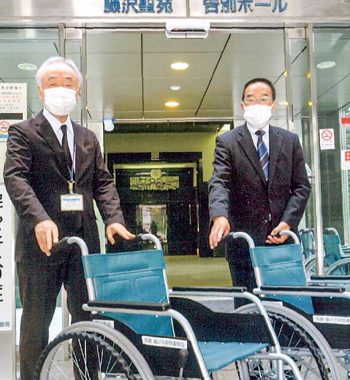 市が公費で運営する「藤沢市斎場」、火葬場の「藤沢聖苑」。組合は開設以来、同施設での葬儀を執り行ってきた。施設管理にも携わる組合。同社の発案で、高齢化で増える車椅子の利用者に不便を感じさせてしまうと案じ、毎月実施している市との懇談会で福祉面の充実を提案。「利用者の声に寄り添うのが我々の務め」と申し出、7月に4台の車椅子を寄贈した。
