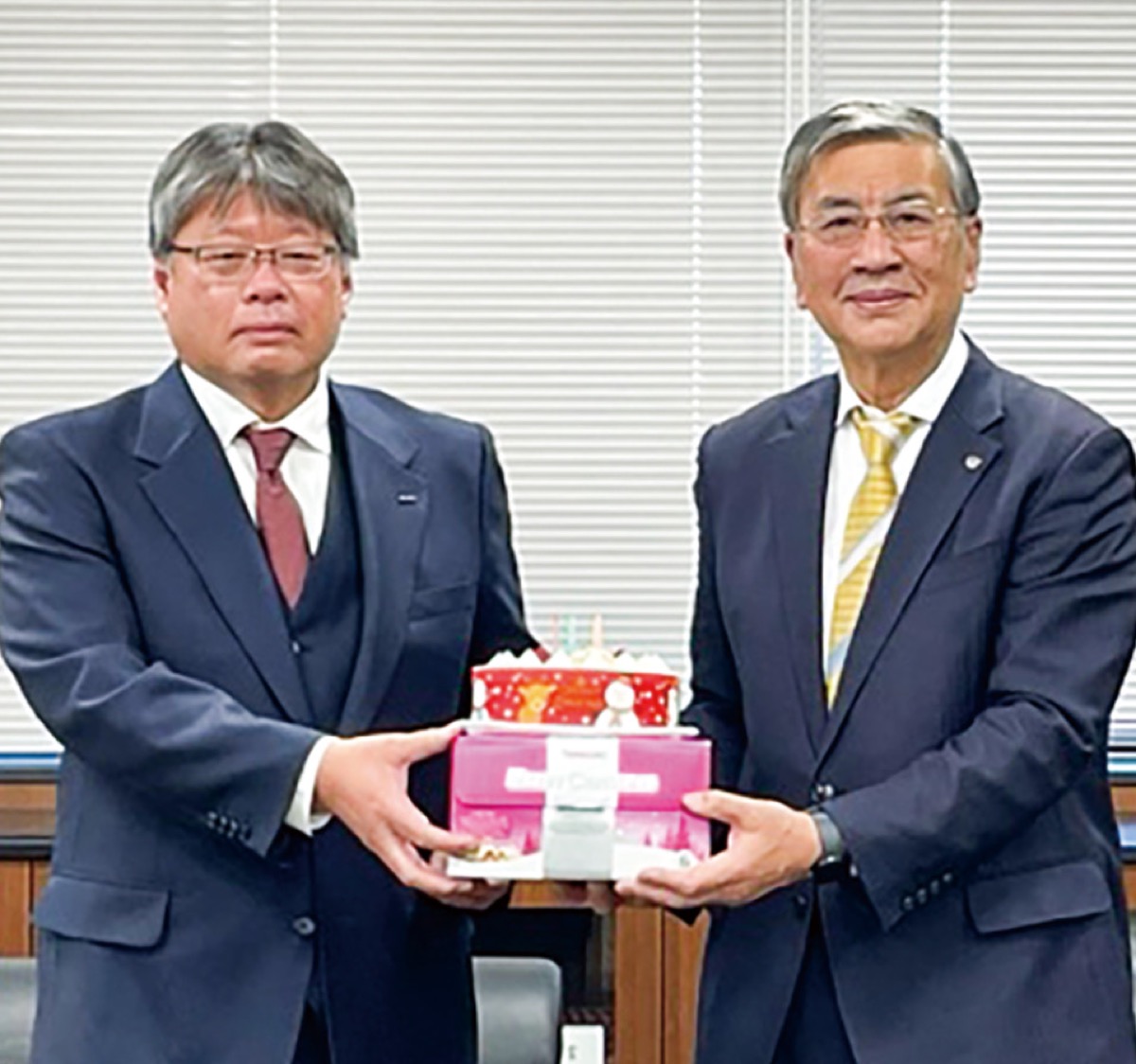 23日には同社の木島工場長らが藤沢市役所を訪れ、鈴木恒夫市長に目録とケーキを手渡した。