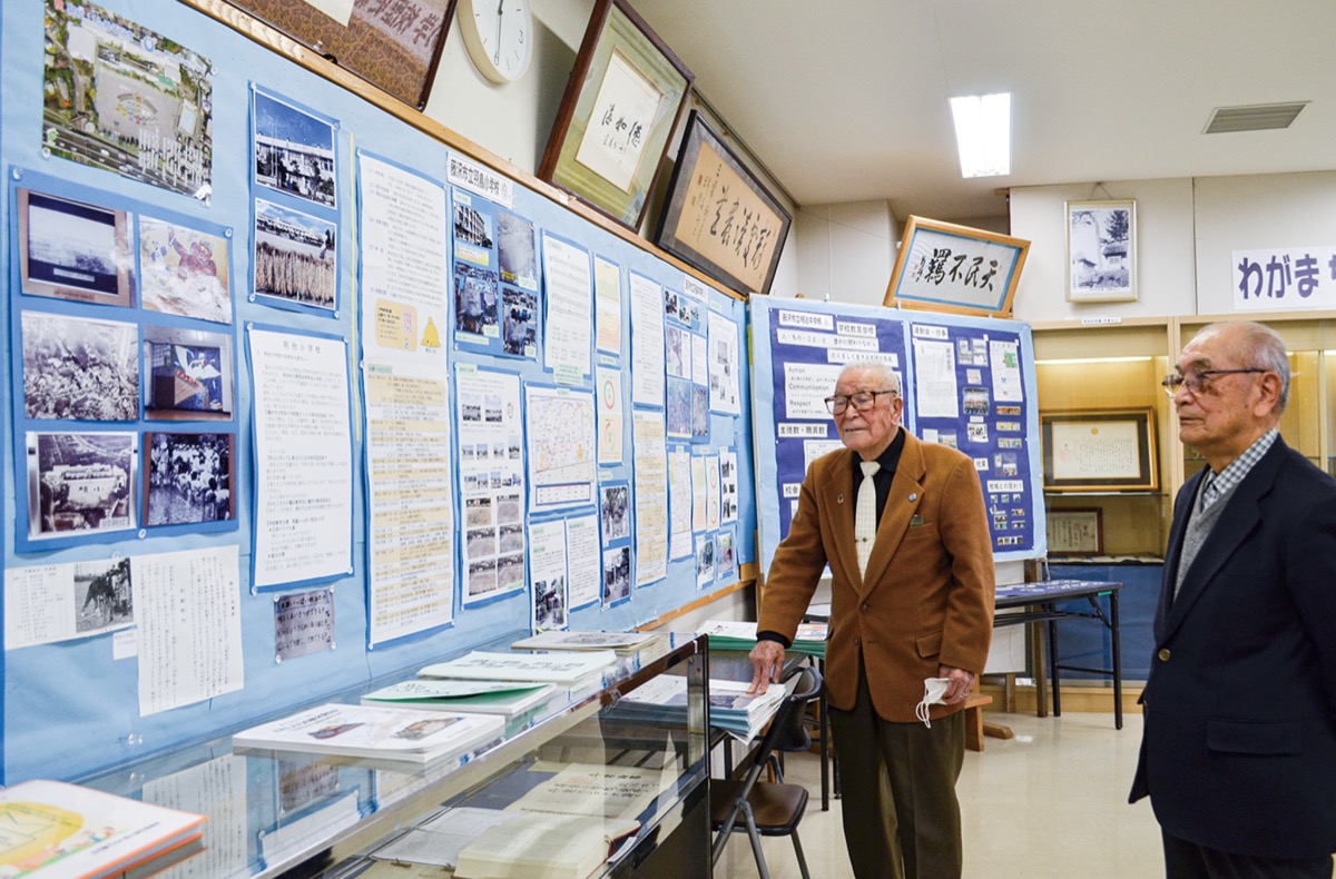 明治地区に残された歴史・文化遺産を後世に伝える活動を行う同史料室が昨年15周年を迎えたことを受け企画した。地区内と通学校の5校(明治小、羽鳥小、八松小、明治中、羽鳥中)協力のもと、各校の「学校の沿革や教育目標」などを展示。大正時代の卒業証書や唱歌の冊子、写真なども並ぶ。同史料室運営委員長の三觜清次さん(93)は「地域で学校を大切に育んでいる歴史を知ってほしい」と話す。