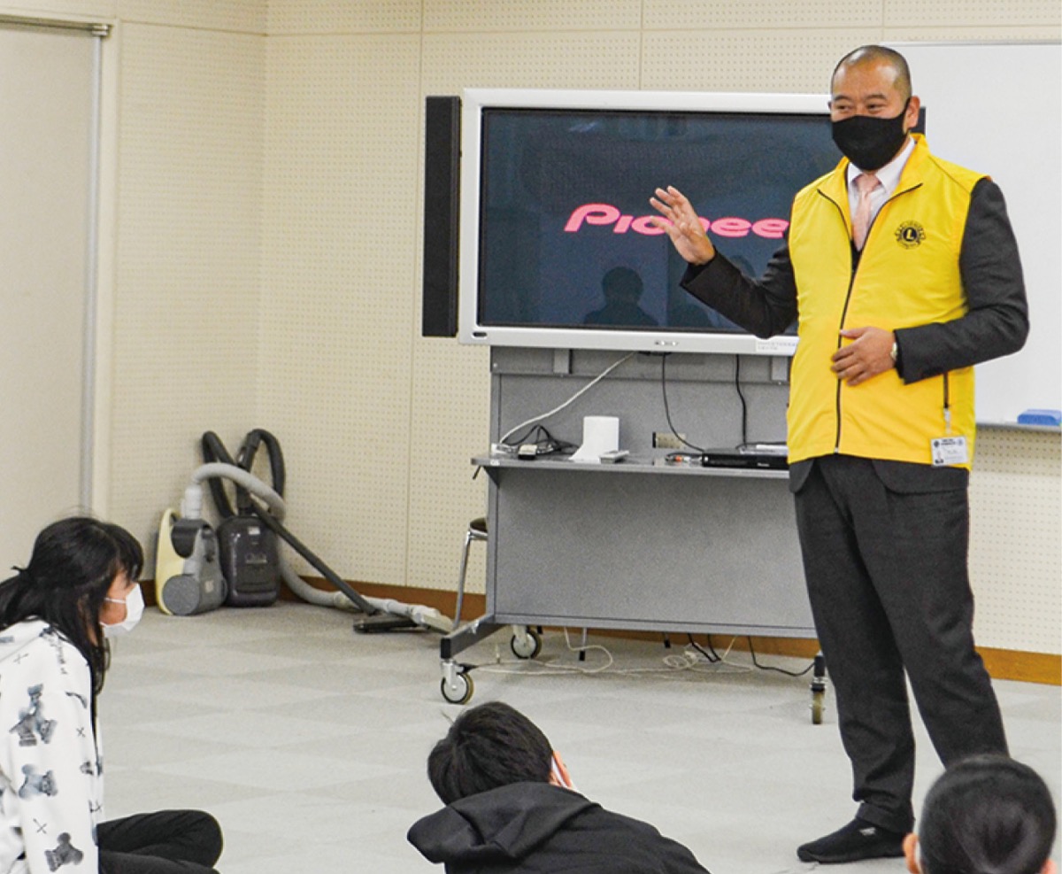 藤沢LCによる青少年育成活動の一環。卒業を控えた6年生約110人を対象に、クラスごとに講話を行った。