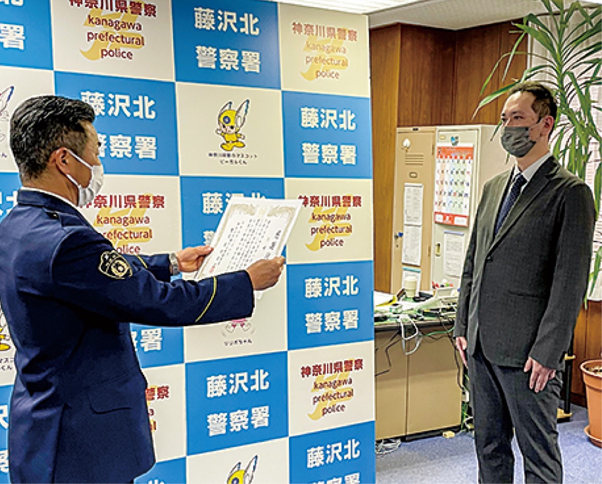 盗撮行為を防いだとして藤沢北署は7日、市内在住の美容師、川崎隆さん(45)に感謝状を送った。