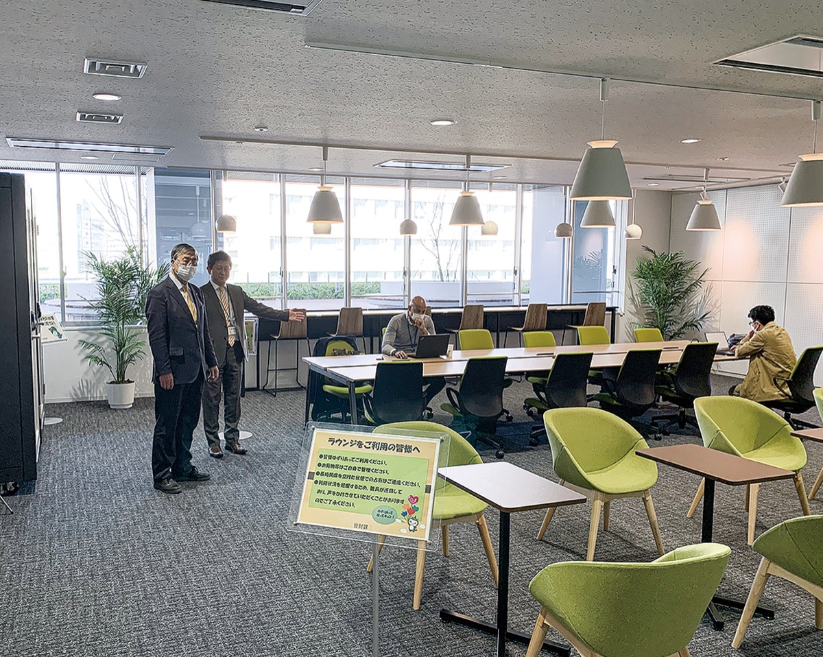 また照明を増設し、薄暗かった空間全体を明るい印象に刷新。観葉植物なども配置し、洗練された空間の演出を心がけた。オープン初日は、早速仕事や勉強に利用する市民らが見られ、鈴木恒夫市長は「雰囲気が良くなって気持ちよく利用してもらえると思う。色々な用途に活用してほしい」と話した。