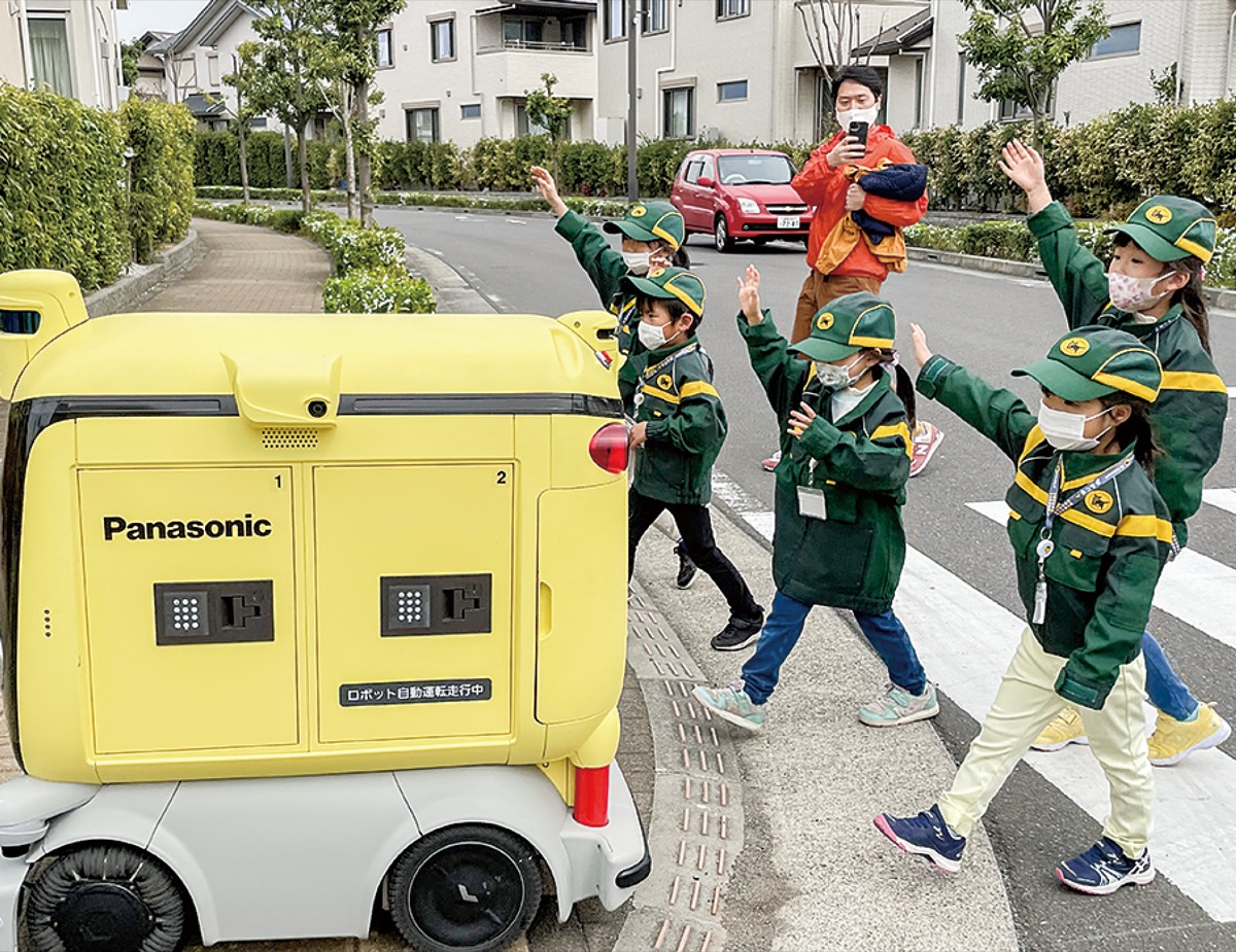 事前に横断歩道の歩き方など安全教室の後、荷物を梱包。パナソニック(株)が開発した自動配送ロボット「湘南ハコボ」に荷物を入れて動きだすと子どもらは「速い」「交差点でちゃんと止まった」などと驚きの表情を浮かべた。配送先では荷物を渡した後に回収も行い、仕事を完了した。