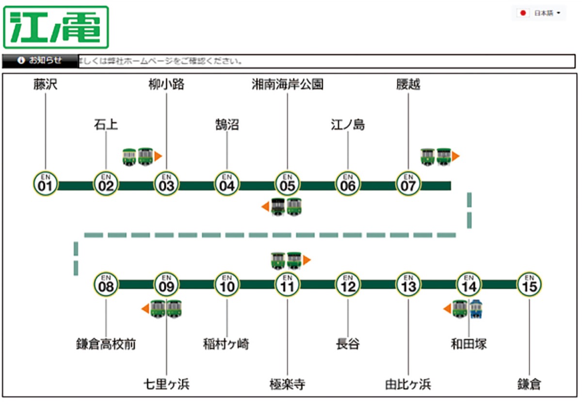 江ノ島電鉄(株)は18日から、運行中の列車走行位置や車両情報などをリアルタイムで確認できる「列車運行情報WEB公開システム」の運用を開始した。