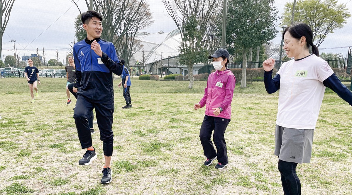 2月に開催された神奈川県実業団駅伝で優勝を飾るなど実績のある同部は地域交流を目的に2016年から「ランニングクリニック」と銘打ち、教室を開いている。この日は「ペース走」と「フォーム改善」の2部門に分かれて実施。部員と監督、コーチなどを含めた16人が7つの体幹トレーニングや正しいフォームを教えた。