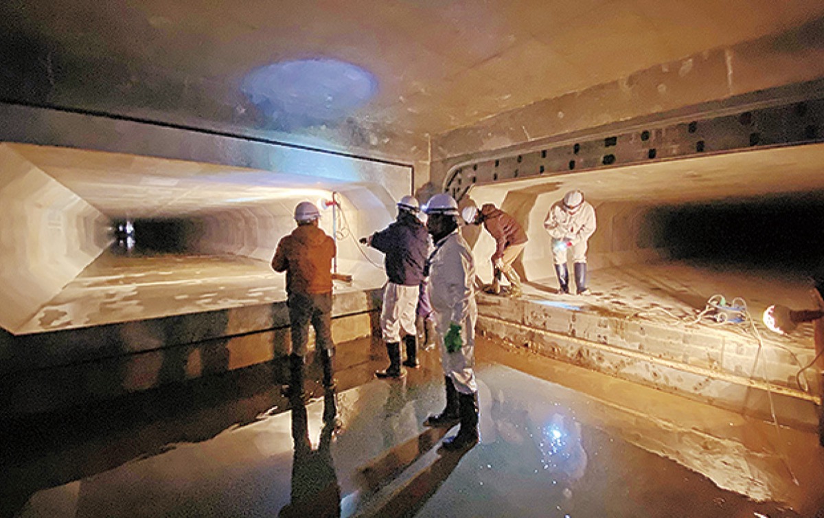 そこで、2015年9月に市議会の一般質問で藤沢市に対して水質改善のために対策を講じることを提起。市は▽公共用水域への汚濁負荷量の削減▽公衆衛生上の安全確保▽ごみの流出防止―を目的に、合流式下水道改善事業を2018年12月にスタート。施設の北側から辻堂海岸までの約480mのボックスカルバート(箱型のコンクリート管)と、大量の雨水を一時的に貯蔵しオーバーフローを防ぐ滞水池(25mプール約24杯分の容量)築造を5カ年計画で工事を行っています。