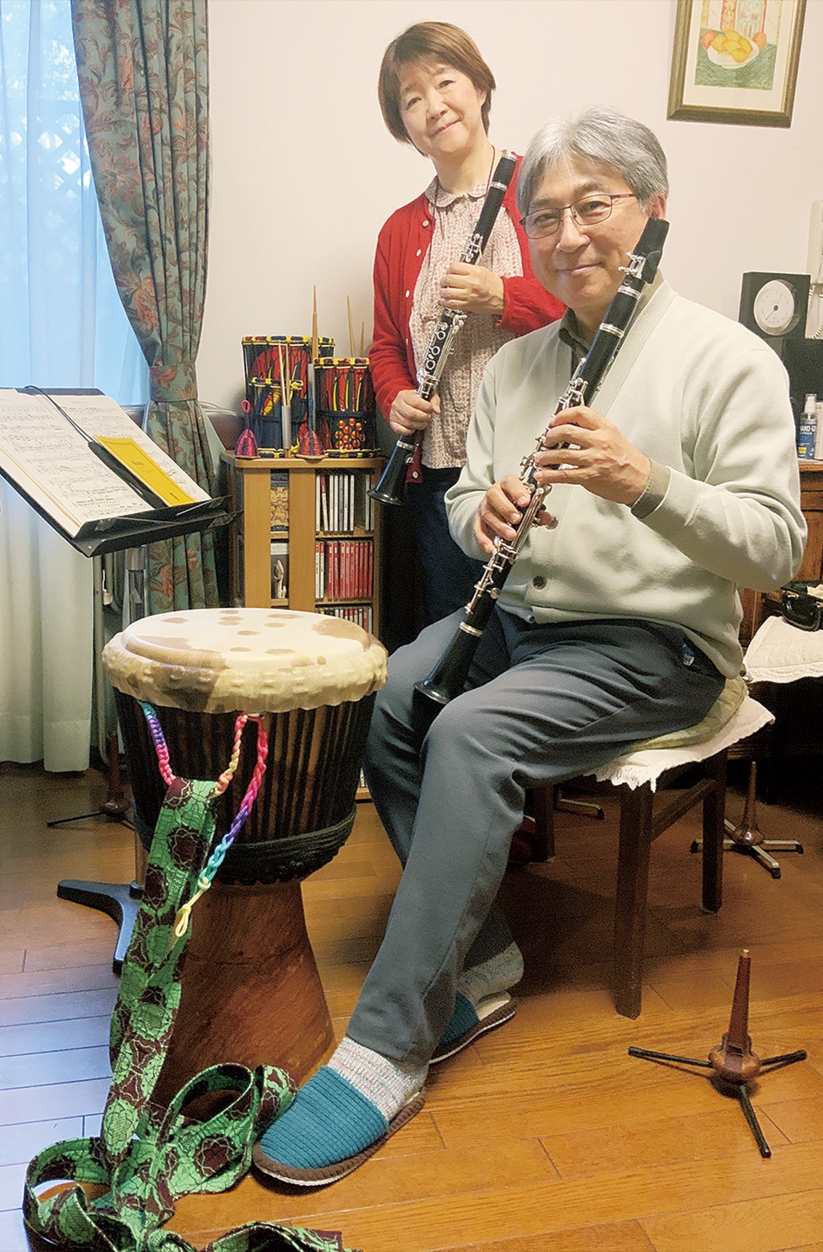 出会ったのは、藤沢から世界にアフリカ音楽の魅力を発信しようと活動する湘南アフリカモン協会のアラカリ大輔さん。ジャンベは西アフリカの打楽器で、「カン・トン・ドン」の3種の音を使い分けて演奏する。妻で同じくクラリネット奏者のみほさん(64)は「3音だけのはずなのに、リズムの組み合わせでメロディーが聞こえてくる、魔法のような音楽」と話す。