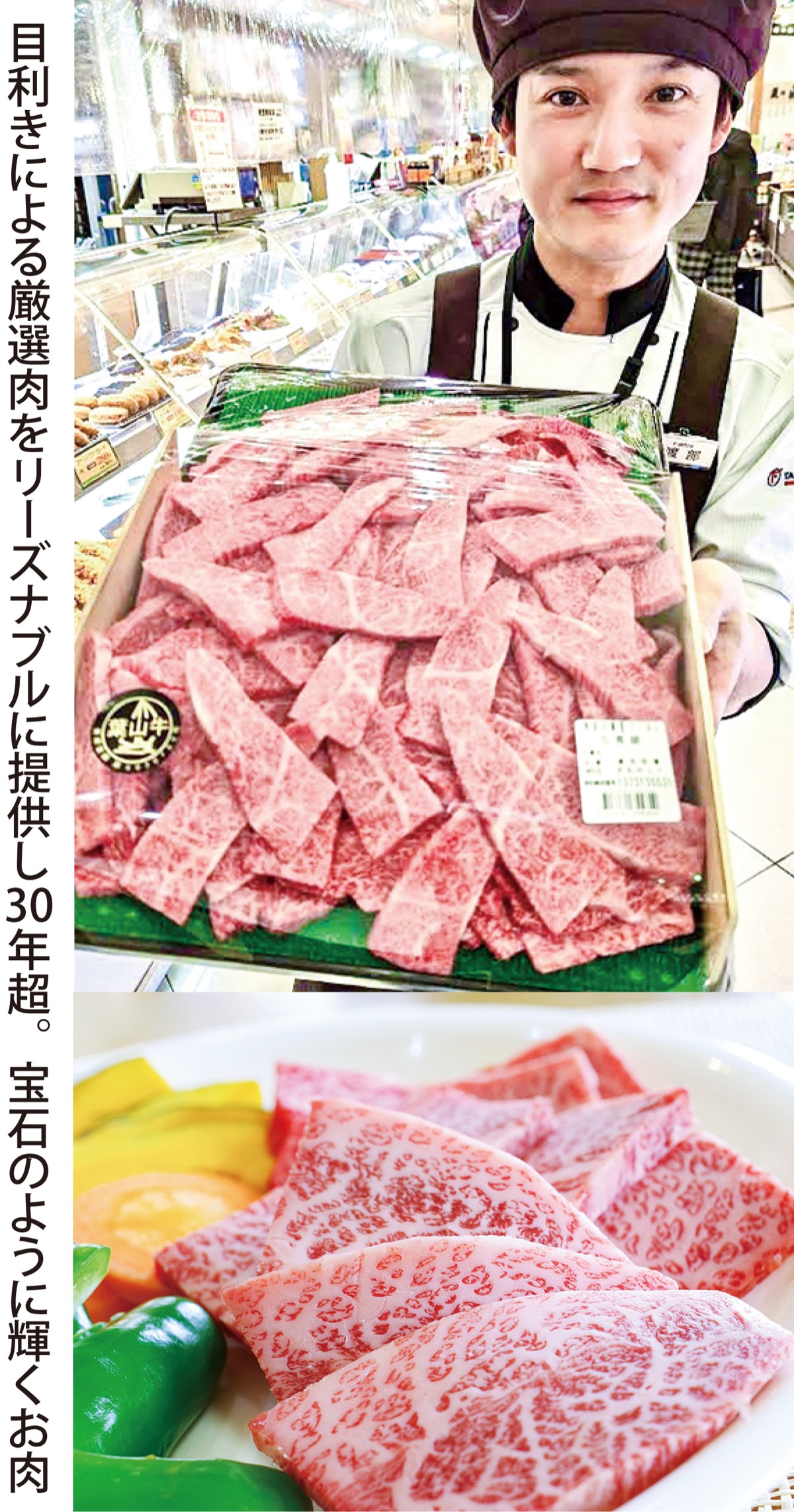 定番の牛肉、数量限定の「葉山牛」は柔らかな口触り、たくさん食べても飽きのこない良質な脂で、世代問わず楽しめる上品な味。目玉商品は焼肉切り落とし。不揃いな分お値打ち、味はもちろん極上で争奪戦必至。