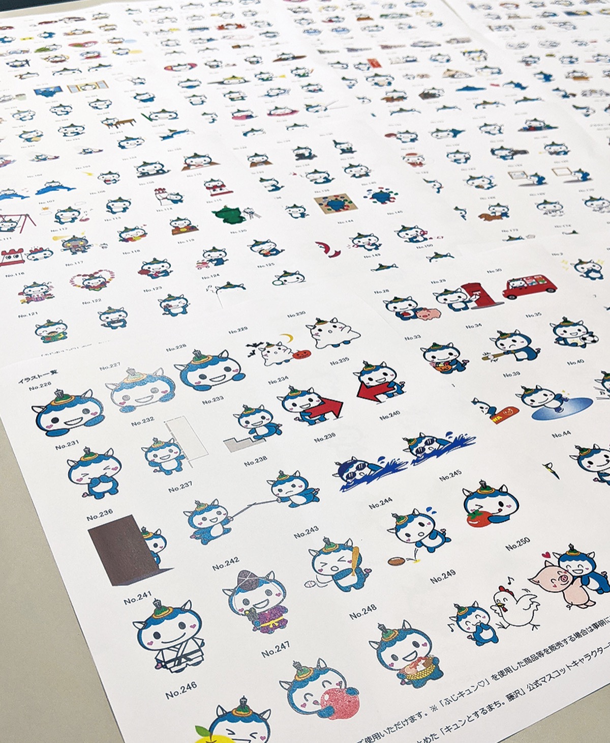 藤沢市広報シティプロモーション課の女性担当は驚いた様子で応じた。5月末時点で市HP上には、393種類のふじキュンが公開されている。「野球バットを振る姿」「リュックを背負う姿」など愛らしいものから「スライム風」「テレビゲームのドット絵風」など、原型をとどめていない個性的なものまでさまざま。取材時に他自治体で公開しているイラスト集(くまモン214種類、ざまりん262種類等)を見せると、「ふじキュン頑張っているんですね」と労う様子だった。