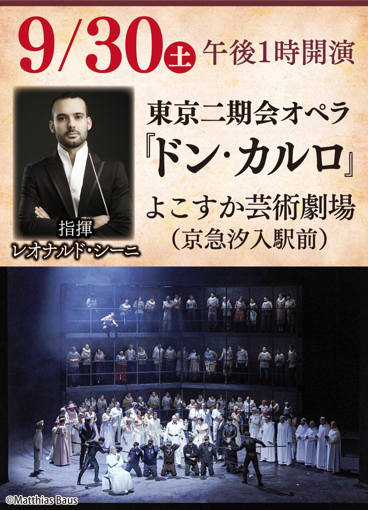 舞台は16世紀スペイン。政治と恋愛の間で葛藤するスペイン王フィリッポ2世の息子カルロと許嫁でフランス王女のエリザベッタの儚く悲しい愛の物語。東京二期会からヴェルディオペラのエキスパートが出演し、東京フィルハーモニー交響楽団の演奏で送る。全5幕、イタリア語上演・日本語字幕付き。午後1時開演。