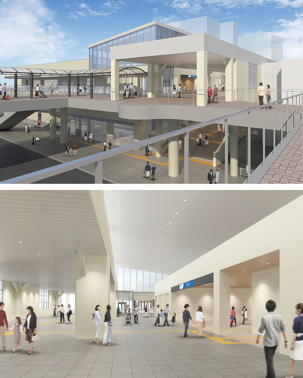 改良工事では、小田急の改札口を既存の1階から自由通路のある2階に移設。メインの改札機能は自由通路階とし、JRの改札と階層を揃える。地上階についても一部改札は残す。